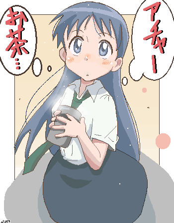 hiiragi kagami, hiiragi tsukasa, lucky star, tagme, 00s, 2girls, blush, closed eyes, hair ribbon, hairband, long hair, multiple girls, open mouth, purple hair, school uniform, serafuku, short hair, sisters, smile, tongue, twins, twintails