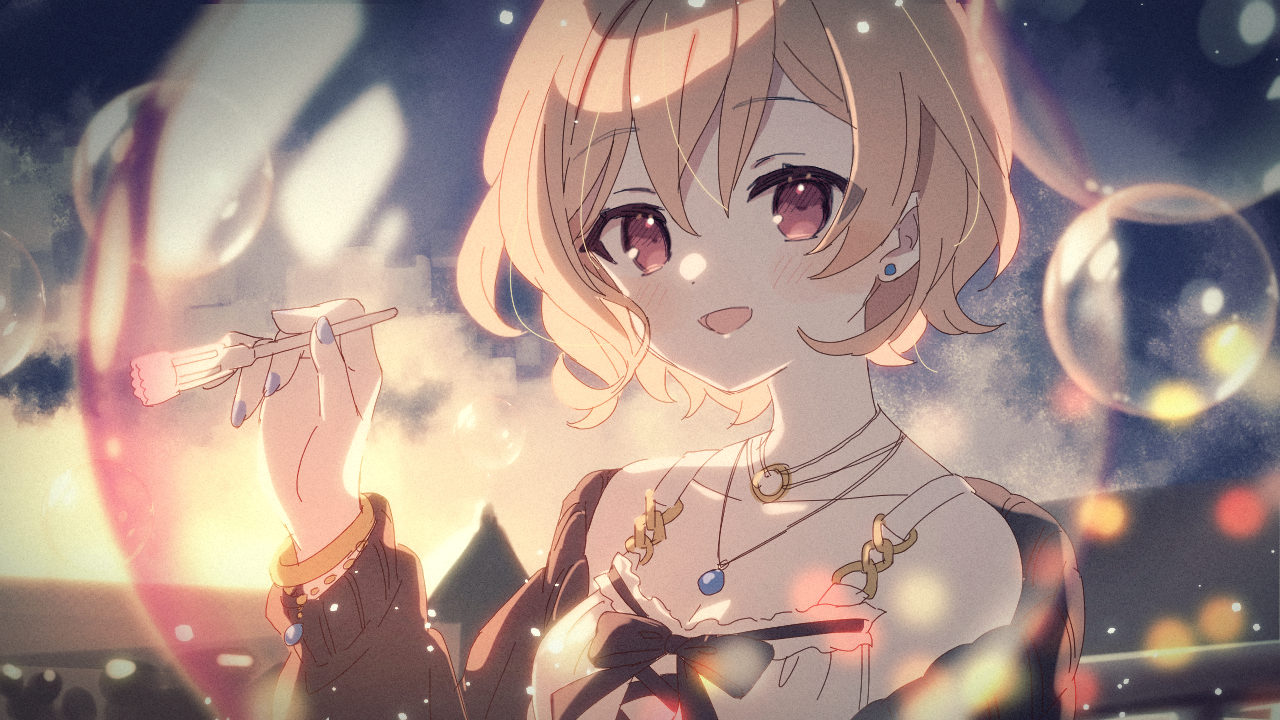 :d1girlbare shouldersblonde hairblue nailsblushbrown jacketbubblebubble pipecollarboneholdingjacketjewelrylong sleeveslooking at viewernail polishnecklaceoff shoulderopen clothesopen jacketopen mouthportraitred eyesshirtshort hairsleevelesssleeveless shirtsmilesolowhite shirt