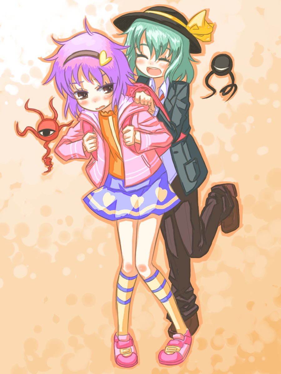 2girlsalternate costumecasualcontemporaryfemale focusheartmultiple girlspink eyespink hairsiblingssisters