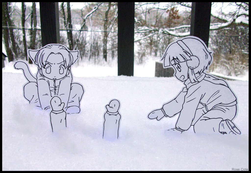 futami yayoi, chen, cirno, touhou, lowres, >:d, 2girls, :d, animal ears, bow, bow bra, bra, brown theme, cat ears, cat girl, female focus, flower ornament, hair bow, hat, monochrome, multiple girls, open mouth, shoes, short hair, skirt, smile, socks, underwear, v-shaped eyebrows, wings