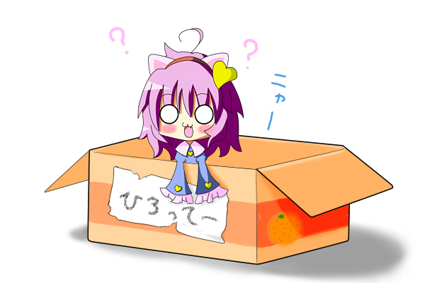 1girlanimal earsboxcat earscat girlchibifemale focusfor adoptionheartin boxin containermikan boxpink eyespink hairsolo