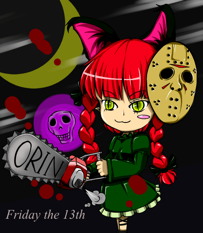 1girlanimal earsbraidcat earscat girlchainsawfemale focushockey maskmaskparodyred hairsolostandingtwin braids