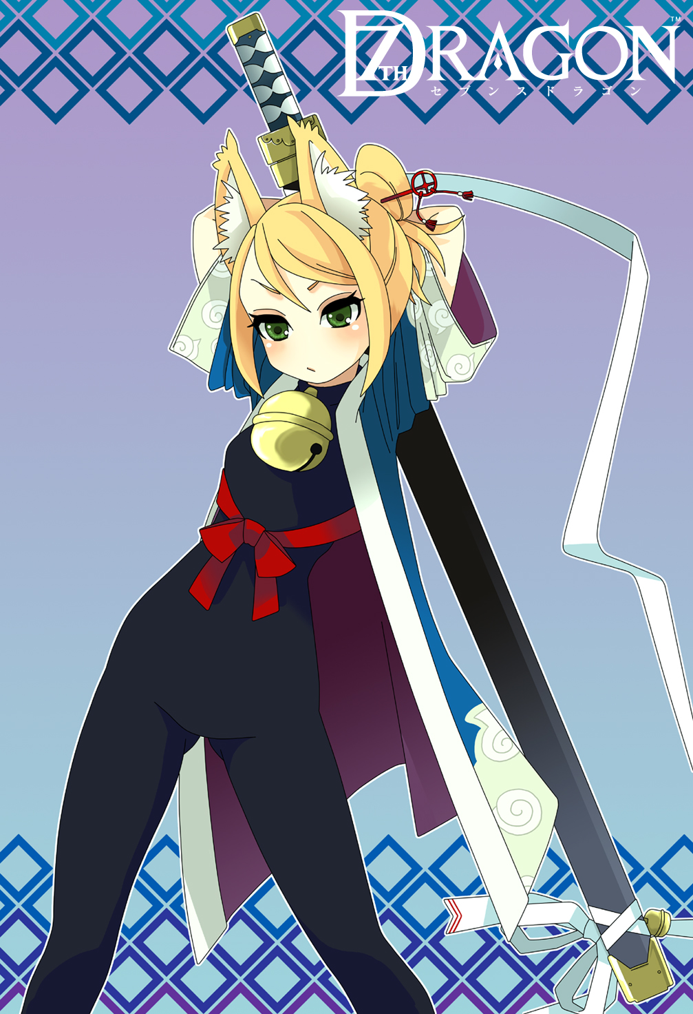1girlanimal earsbellblonde haircat earsfemale focusfox earsgreen eyesskin tightsoloswordweapon