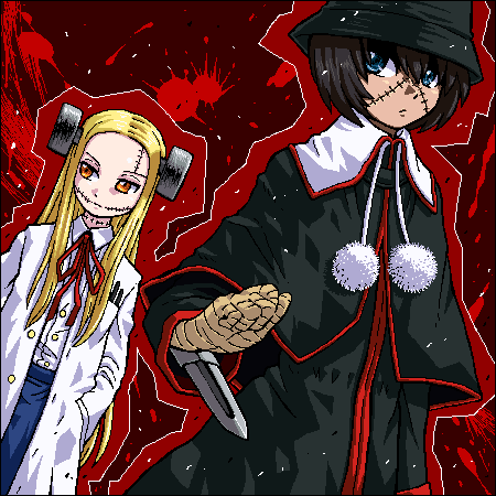 ryuuguu rena, higurashi no naku koro ni, 00s, 1girl, billhook, blood, blood on face, crazy eyes, female focus, hatchet, nata (tool), red eyes, school uniform, serafuku, simple background, smile, solo, white background, yandere