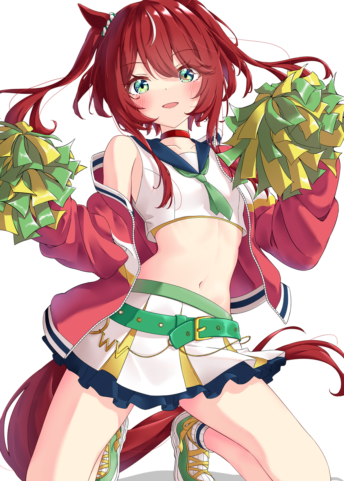 naegi (naegidokoro), shigure ui (vtuber), shigure ui (vtuber) (1st costume), indie virtual youtuber, highres, 1girl, beret, black shoes, blonde hair, from behind, grey jacket, grey skirt, hair rings, hat, holding, holding stylus, jacket, pinstripe jacket, pinstripe pattern, pinstripe skirt, pleated skirt, red hat, red sailor collar, red socks, reference inset, sailor collar, shoes, skirt, socks, solo, standing, standing on one leg, stylus, virtual youtuber, white background