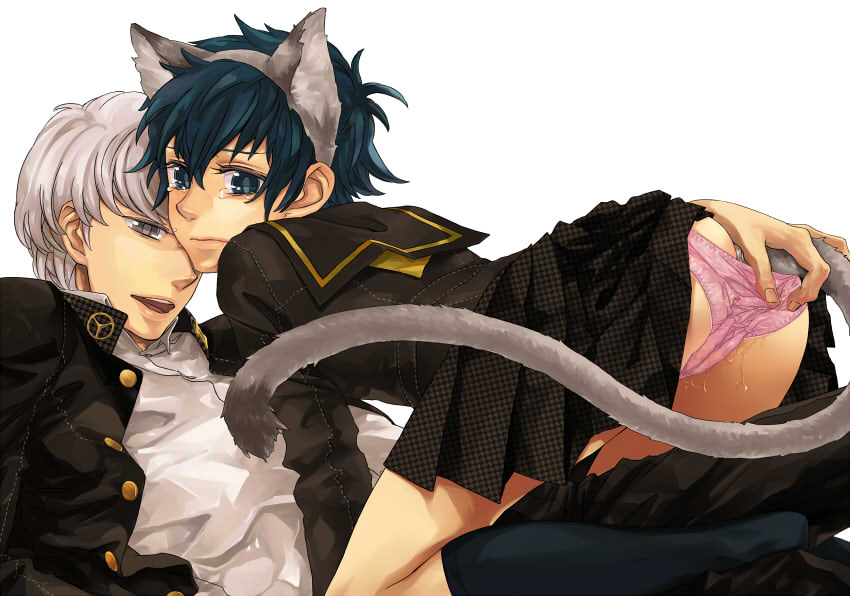 1boy1girlanalanal tailanimal earsassblue eyesblue hairbutt plugcameltoecat earscat tailcouplefake tailgrey eyesgrey hairheterohoundstoothpantiespink pantiespussy juiceschool uniformserafukusex toyshort hairsimple backgroundskirttailtearsunderwearunmoving patternupskirt