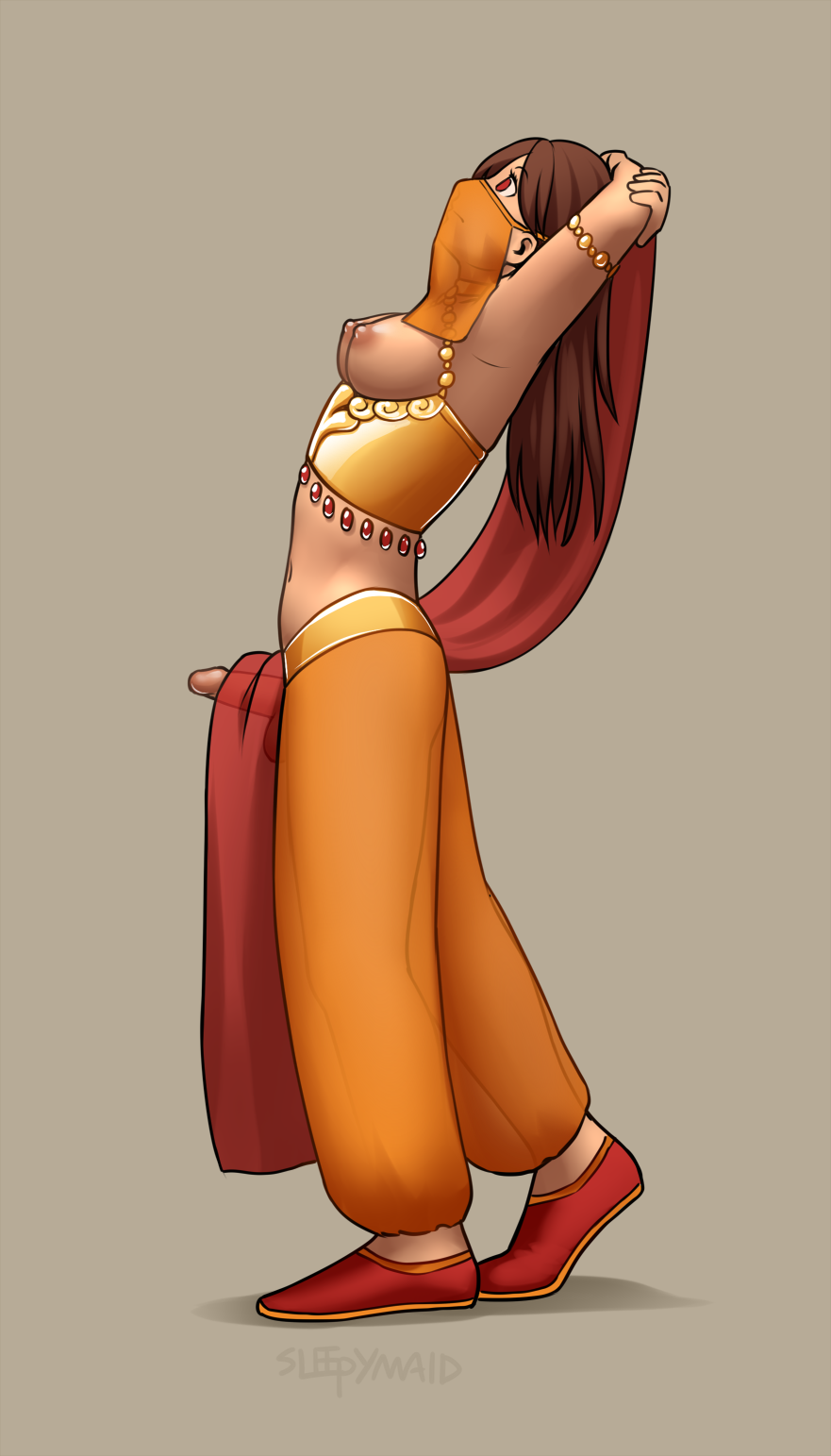 armbandsarms behind backballsbreastsbrown hairclosed mouthclothesdancerempty eyeserectionexpressionlessFlag for Deletionfuta onlyfutanarihairintersexintersex onlylong hairmind controlnipplespenisred eyes