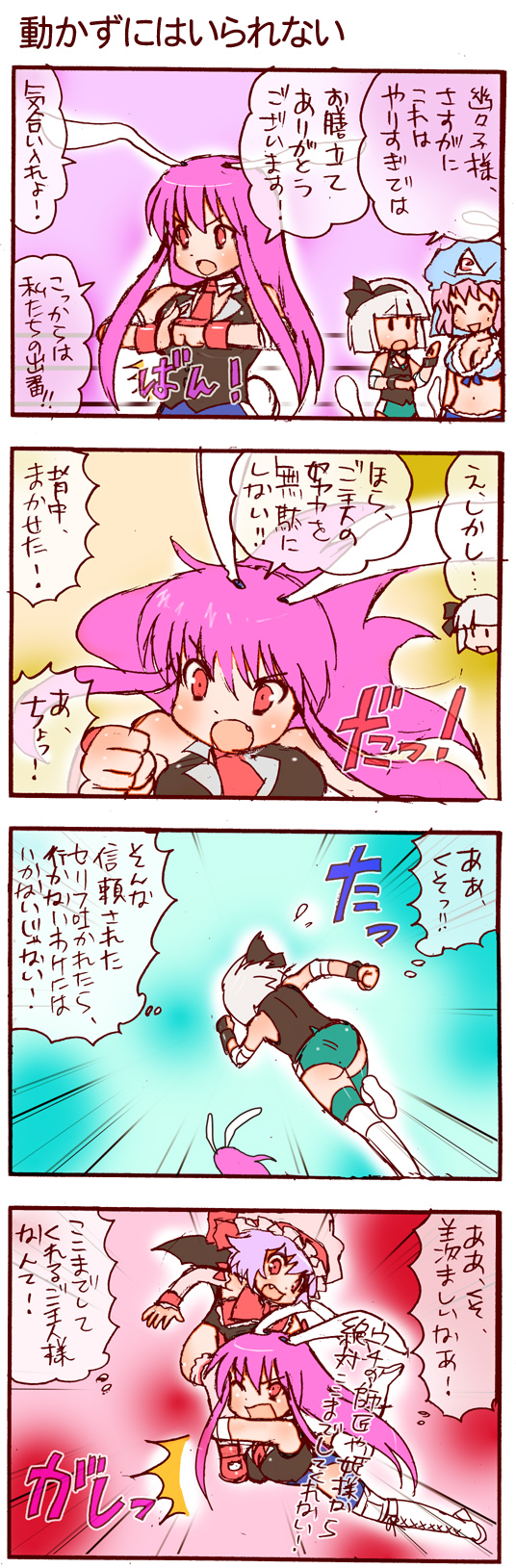 4komaanimal earsbat wingsbattlecomicfangfemale focushairbandhatlong hairpink hairpurple eyesrabbit earsred eyesshort hairwingswrestling