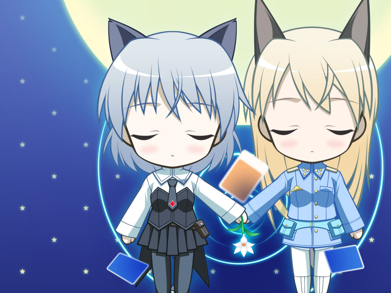 00s2girlsanimal earsblack pantyhoseblonde haircardchibiclosed eyesfloating cardflowerholding handsmultiple girlspantyhosetailwhite pantyhose