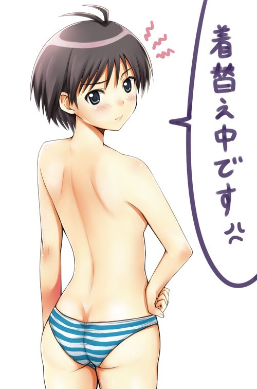 00s1girlangryantenna hairassbackblack eyesblack hairblushbutt crackdressingfemale focusflat assflat chesthand on own hiphip focuslooking backpantiesshort hairsolostriped clothesstriped pantiestopless femaleunderwearunderwear only