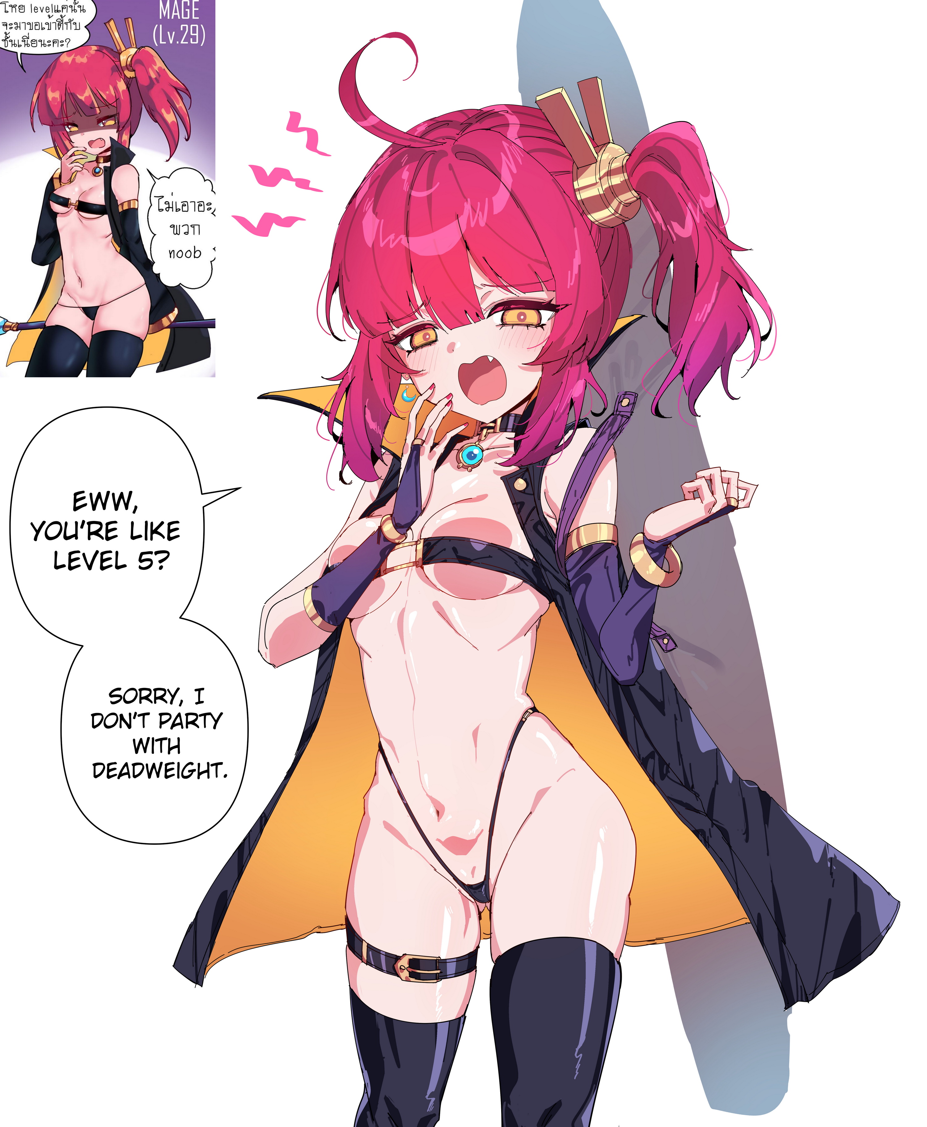1girlahogebandeaubeltbelt buckleblack bandeaublack beltblack chokerblack jacketblack pantiesblack thighhighsblushbreastsbridal gauntletsbucklechokercowboy shotdisgustdouble-parted bangsenglish textfanggluteal foldhair between eyeshand to own mouthhighleghighleg pantiesjacketlooking at viewermedium hairopen clothesopen jacketopen mouthpantiespetitepink hairpurple bridal gauntletsreference insetrevealing clothessimple backgroundsmall breastssolo focusspeech bubblestomachtalkingthigh beltthigh strapthighhighsunderwearwhite backgroundyellow eyes