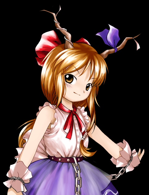 1girlbrown eyesbrown hairchainfemale focushornslong hairofficial styleoniorange hairparodysolostyle parodyzun (style)