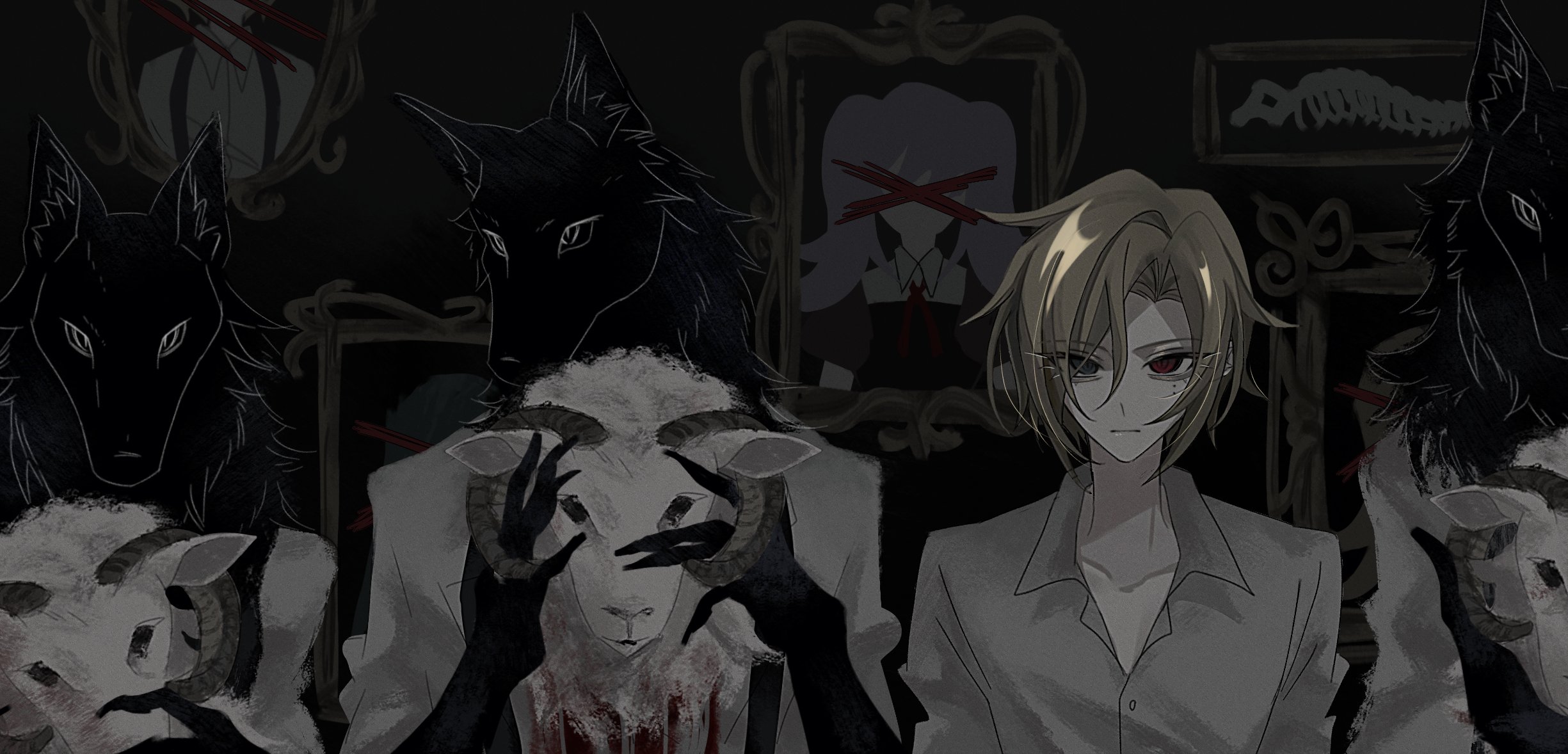 kamoshika lily, still in love (umamusume), umamusume, absurdres, highres, 1girl, animal ears, artist name, bow, brown hair, ear bow, ear ribbon, grin, hair between eyes, hair ornament, hair over shoulder, hands on own face, heart, heart of string, long hair, long sleeves, multicolored hair, nail polish, parted lips, red eyes, red nails, red ribbon, ribbon, signature, smile, solo, streaked hair, twitter username, veil, white hair, white sleeves, white veil