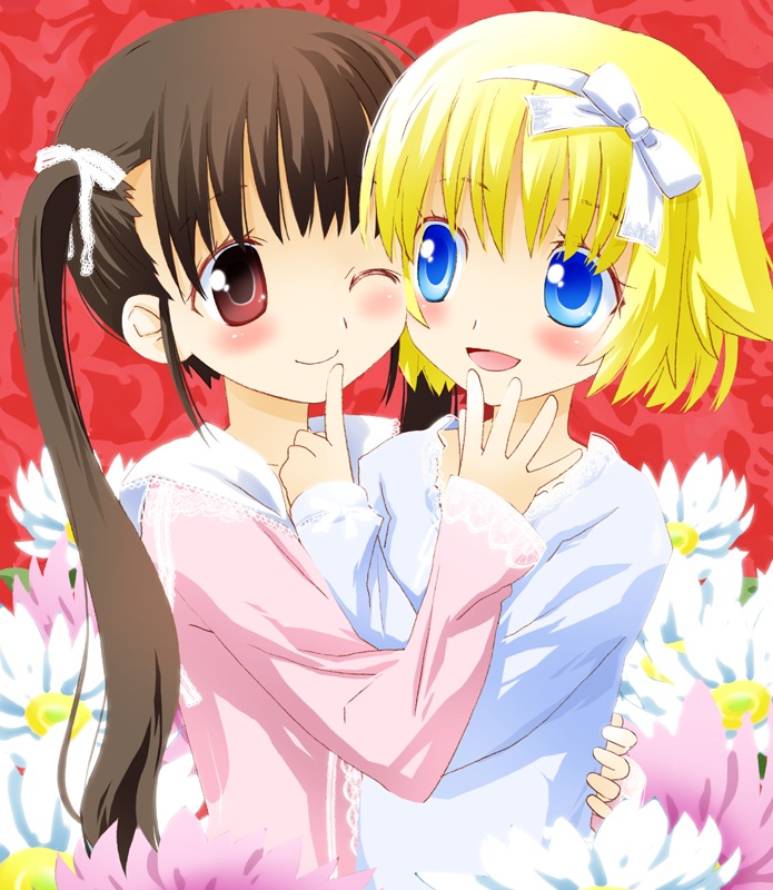 naf, backbeako (torotei), backbeard, gegege no kitarou, bad id, bad pixiv id, bow, covered erect nipples, elbow gloves, fang, gloves, greyscale, hair bow, hair over one eye, high contrast, long hair, monochrome, pointy ears, simple background, smile, solo