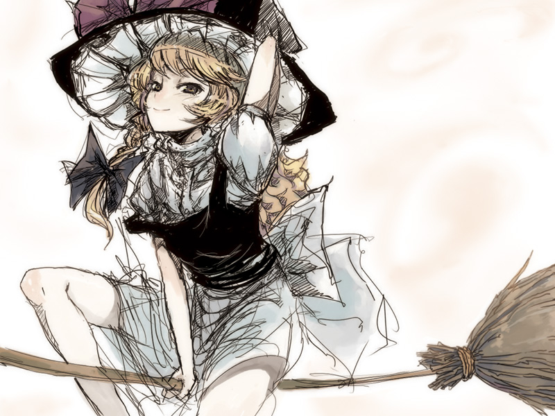 1girlblonde hairbowbraidbroombroom ridingbrown eyesfemale focushatlong hairribbonsketchsolowitchwitch hat