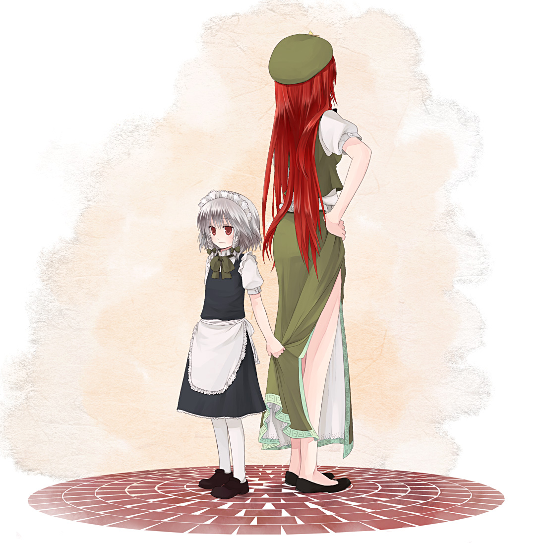 2girlsaged downchildfemale focusfull bodyhairbandhand on own hiphip focuslegsmultiple girlsred eyesred hairribbonstanding