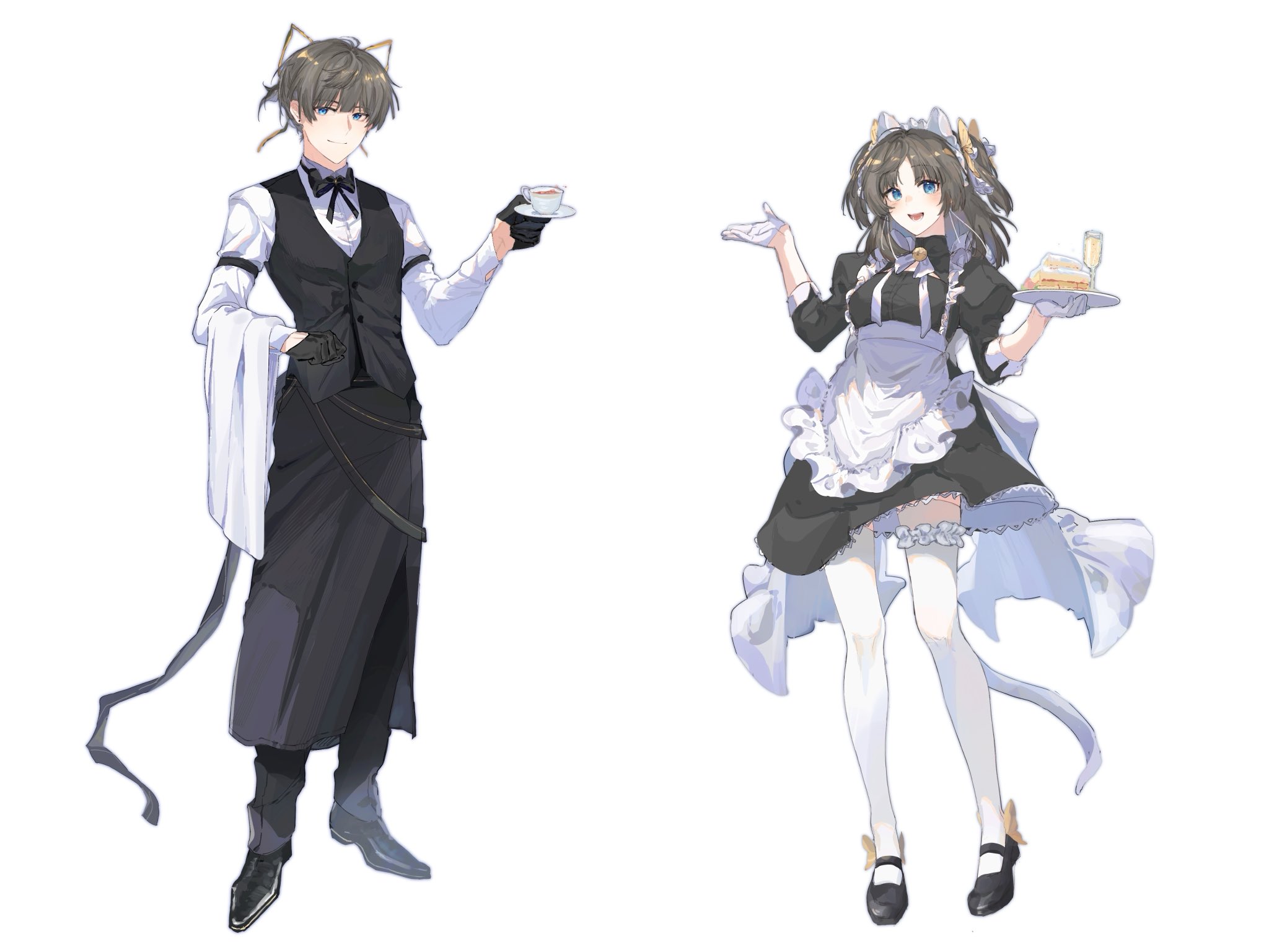 :d1boy1girlabove-cleavage cutoutalcoholalternate costumeanimal earsapronbellbiheyefumublack apronblack dressblack glovesblack hairblack pantsblack shoesblack vestblue eyesbowbowtiebutterfly hair ornamentcakecake slicecenter-flap bangschampagnechampagne fluteclosed mouthclothing cutoutcupdressdress shoesdrinking glassdual personaearringsfake animal earsfoodfrilled thighhighsfrillsfull bodygloveshair ornamenthair ribbonhalf glovesholdingholding plateholding saucerholding trayjewelryjingle belljuliet sleeveslong hairlong sleeveslooking at viewermaid apronmaid headdressmary janesneck bellneck ribbonopen handopen mouthoverskirtpantsparted bangsplatepuffy sleevesribbonsaucershirtshoesshort dressshort hairsleeve cuffssleeve gartersmilestandingstud earringsteateacupthighhighsthree-quarter sleevestoweltowel on armtraditional bowtietraytuxedo shirttwo side upvestwaist apronwaiterwaitresswhite apronwhite backgroundwhite gloveswhite overskirtwhite ribbonwhite shirtwinged shoeswingsyellow ribbon