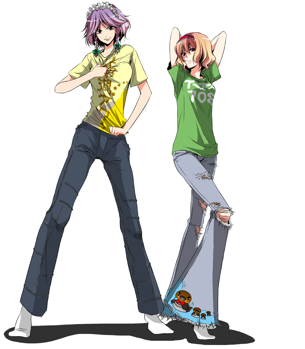 2girlsalternate costumeblonde haircasualcontemporaryfemale focusfull bodyhairbandmultiple girlsribbonshort hairsimple backgroundsockswhite background