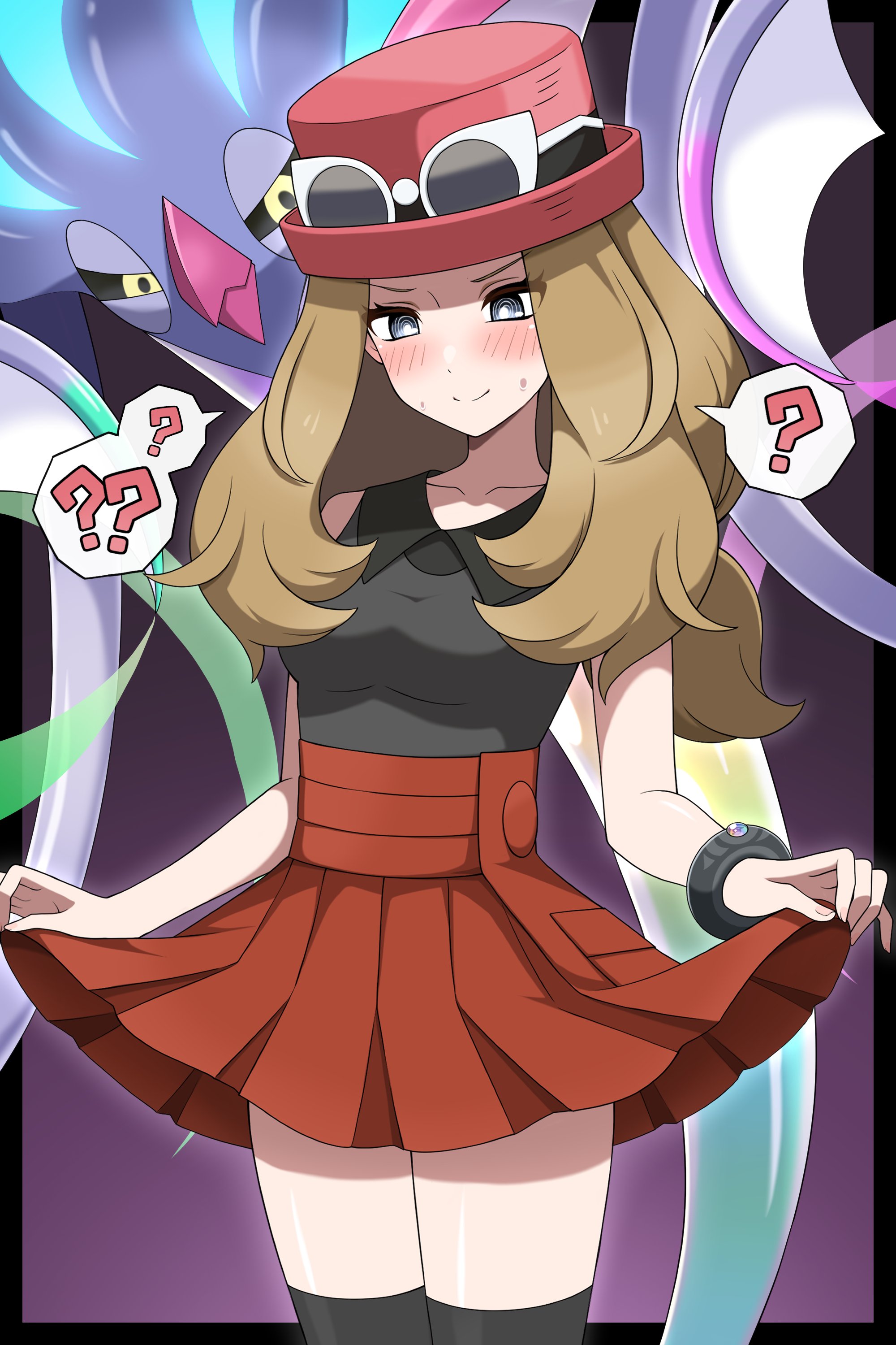 pokopi, miyamoto iroha, sumomomo momomo, 00s, 1girl, black background, dress, female focus, garter straps, long sleeves, looking at viewer, ponytail, red dress, red eyes, simple background, sitting, solo, thighhighs, wariza, zettai ryouiki