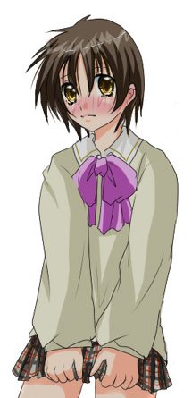 shaun (nine o), iwakura lain, serial experiments lain, 1990s (style), 1girl, brown eyes, brown hair, female focus, hair ornament, hairclip, retro artstyle, school uniform, serafuku, skirt, solo