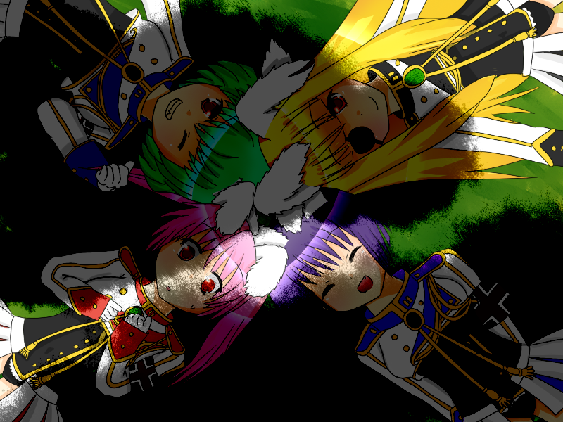 00s4girlsanimal earsarmbandblonde hairblue hairclosed eyeseyepatchlong hairmultiple girlspink hairrabbit earsred eyessmile