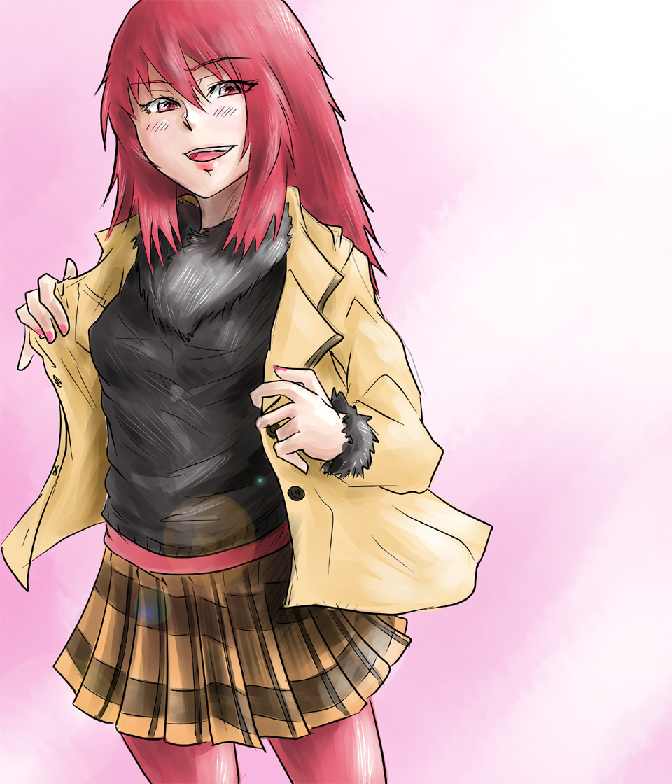 00s1girlfemale focusnail polishpantyhosepink nailspink pantyhoseplaid clothesplaid skirtred eyesred hairschool uniformskirtsolo