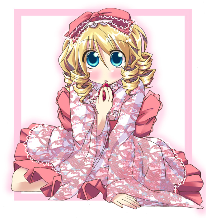 imoko., maiko (artist), hatsune miku, vocaloid, world is mine (vocaloid), traditional media, 1girl, aqua hair, female focus, green eyes, lying, shikishi, skirt, solo, thighhighs, twintails