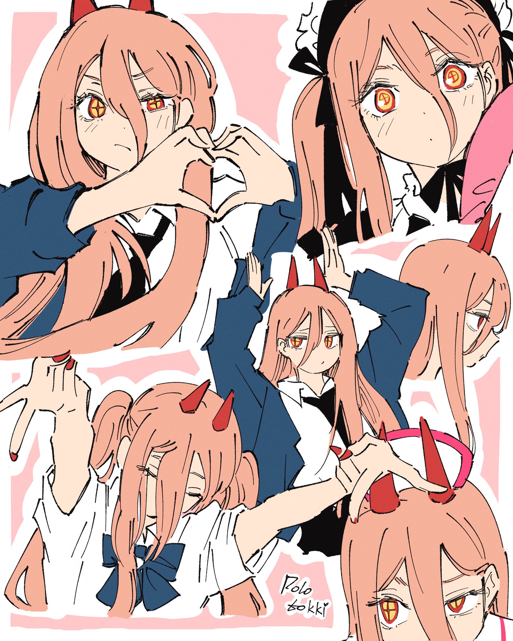 1girlartist nameblack necktieblonde hairblue jacketblushcross-shaped pupilsdemon hornsdouble gyaru vdouble-parted bangsfingernailsgyarugyaru vhair between eyesheartheart handshornsjacketjouzai (song)kogallong hairlong hair between eyeslooking aheadlooking at viewermultiple viewsnail polishnecktieoutlinerabbit poseschool uniformshirtsignaturesimple backgroundstraight hairsymbol-shaped pupilstwintailsvvery long hairwhite outlinewhite shirtyellow eyes