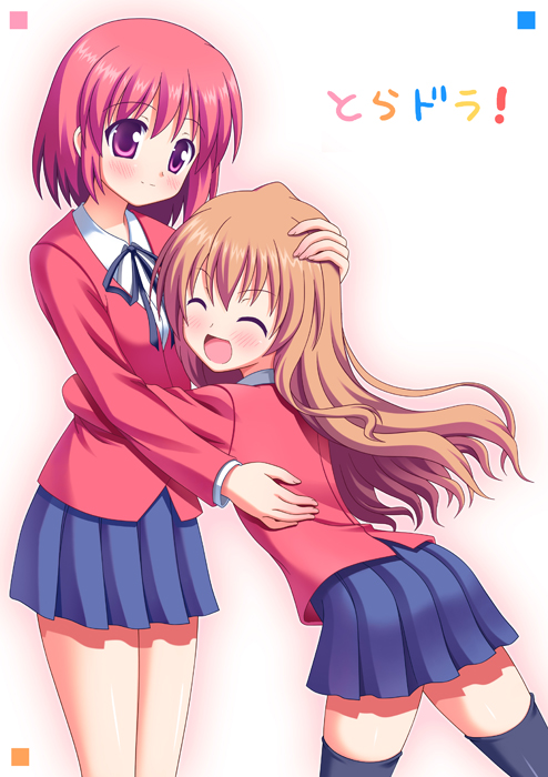 00s2girlsblack thighhighsblushbrown hairclosed eyeslong hairmultiple girlsred eyesred hairschool uniformshort hairthighhighs