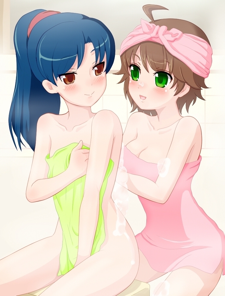 mizusawa mao, kimi kiss, highres, 1girl, blush, braid, brown eyes, brown hair, naughty face, smile, solo focus, twin braids, unzipped