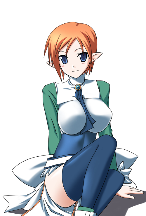 1girlarm supportascotbeltbetween breastsblonde hairblue eyesblue thighhighsblushbowbreastscrop topfemale focusgemgreen shirtimpossible clothesimpossible shirtlarge breastsloinclothlooking at viewerorange hairpantiespantyshotparted bangspointy earsshadowshirtshort hairsimple backgroundsittingskirtsmilesolothighhighsturtleneckunderwearupskirtwhite panties
