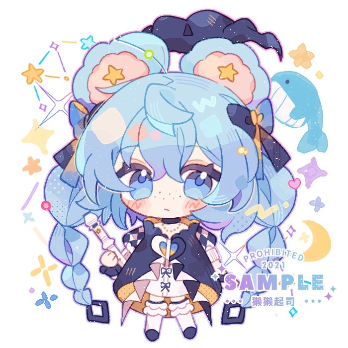 1girlanimal earsbear earsbear girlblack dressblack shoesblue eyesblue hairblush stickersbraidchibichibi onlyclosed mouthdressflutefull bodyholdingholding fluteholding instrumentinstrumentlong hairlooking at viewershoesshort sleevessimple backgroundsolostandingthighhighstwin braidswhite backgroundwhite thighhighs