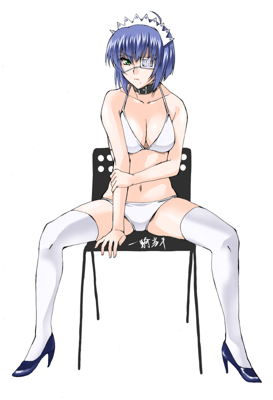 00s1girlbikiniblue hairbrabreastschaircleavagecollareyepatchfemale focusfull bodygreen eyeshigh heelslegslingeriemaidmaid headdressnavelpantiesshoesshort hairsittingsolospread legsswimsuitthighhighsthighsunderwearwhite bikiniwhite brawhite pantieswhite thighhighs