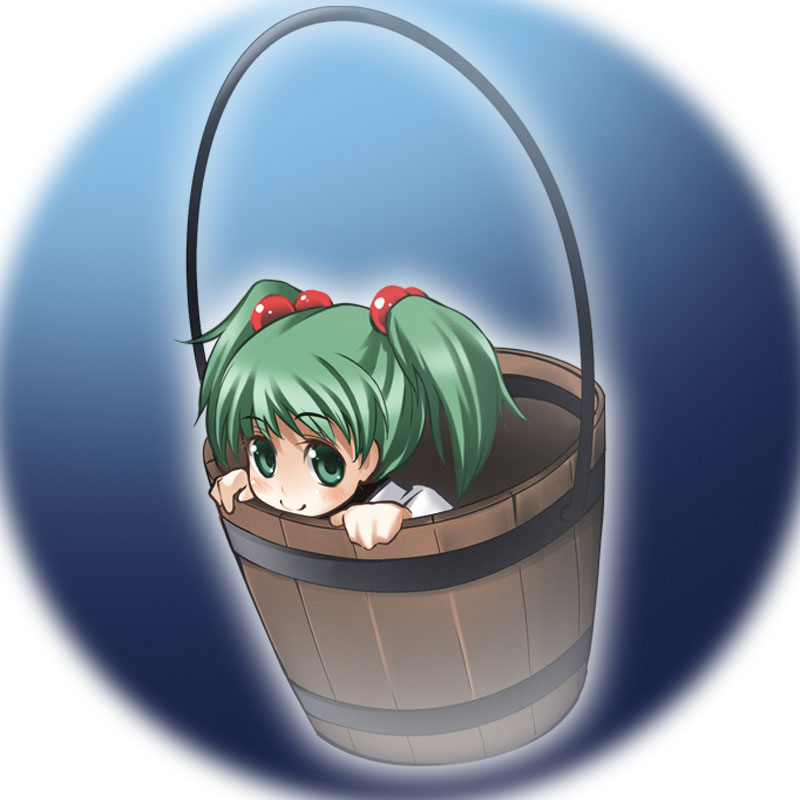 1girlblushbucketfemale focusgreen eyesgreen hairhair bobbleshair ornamentin bucketin containermatching hair/eyesshort hairsmilesolotwintails