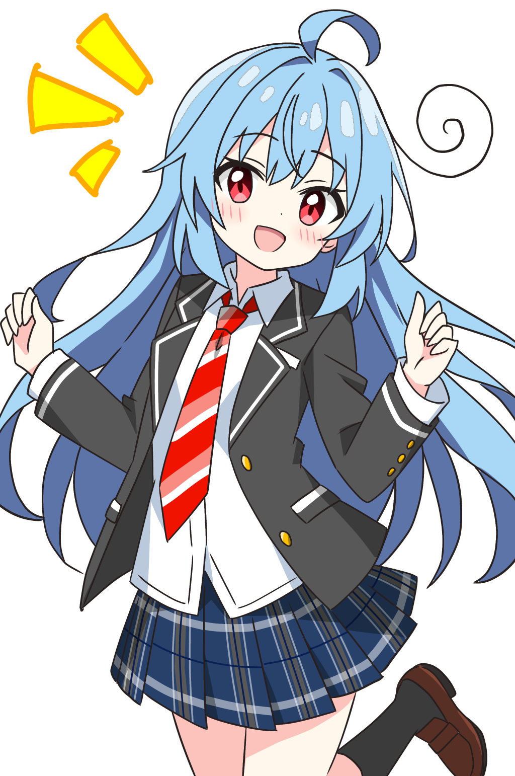 :d1girlahogeblack jacketblack socksblazerblue hairblushbrown shoescollared shirtcowboy shotdot nosehands upjacketloaferslong hairlong sleeveslooking at viewernotice linesopen clothesopen jacketopen mouthplaid clothesplaid skirtpleated skirtred eyesschool uniformshirtshoessimple backgroundskirtsmilesockssolowhite backgroundwhite shirtwhite skirt