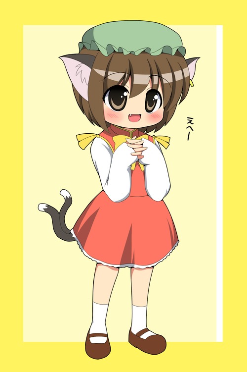 1girlanimal earsblushbrown eyesbrown haircat earscat girlcat tailchibiearringsfangfemale focushatjewelrylong sleevesmultiple tailsshort hairsleeves past wristssolostandingtail