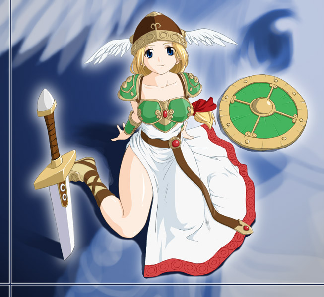 lev (zax), zax, dragoon (fft), dragoon (final fantasy), final fantasy, final fantasy tactics, 1girl, armor, blonde hair, dragoon, female focus, polearm, red eyes, solo, spear, twintails, weapon