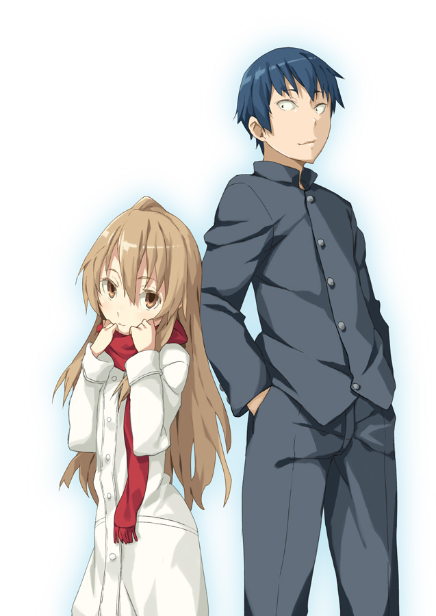 00s1boy1girlblue hairbrown eyesbrown haircoathands in pocketslong hairscarfschool uniformshort hair