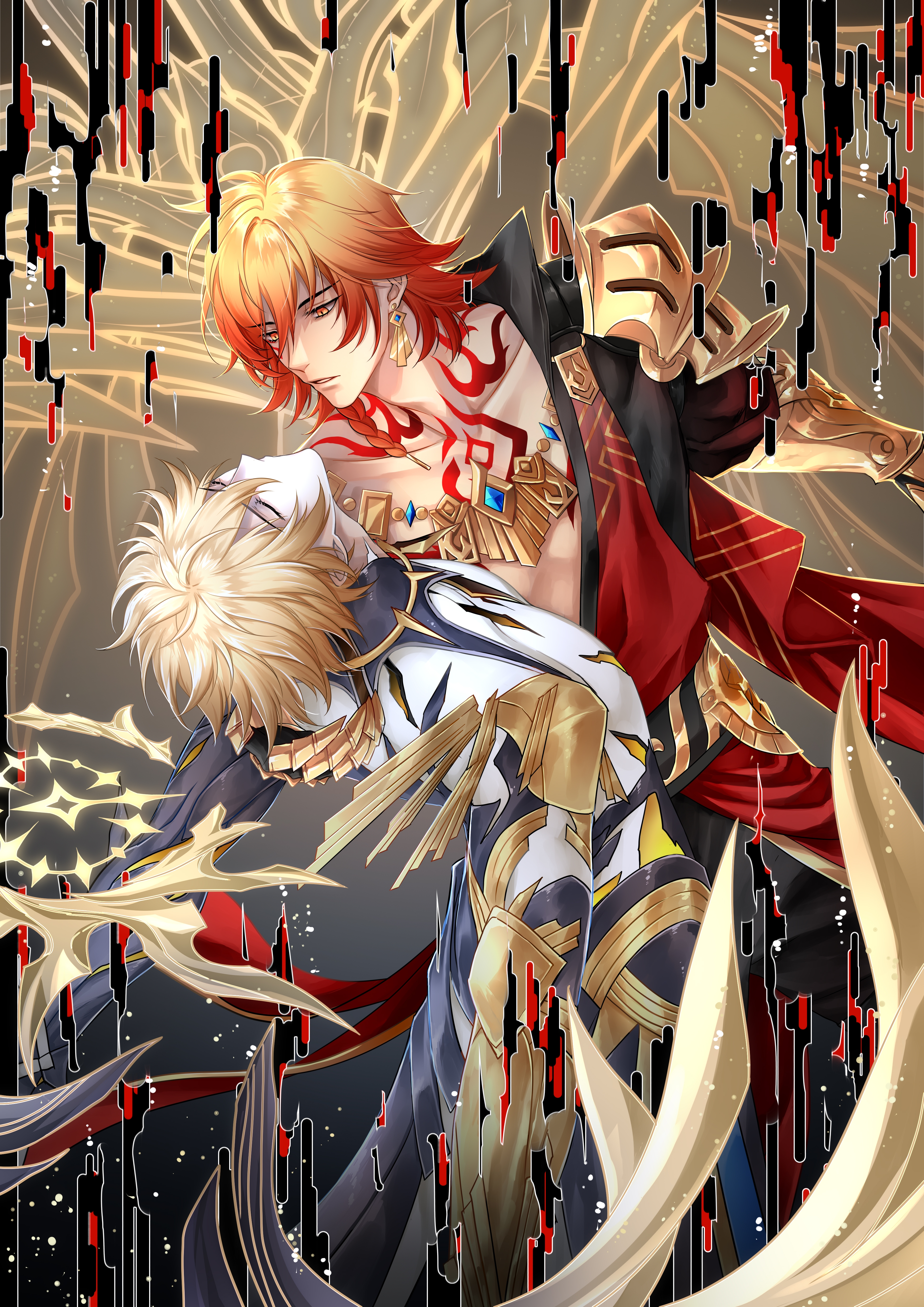 hei (darker than black), yin (darker than black), darker than black, lowres, 00s, 1boy, 1girl, black hair, black jacket, dress, grey hair, jacket, long sleeves, ponytail, purple dress, text focus
