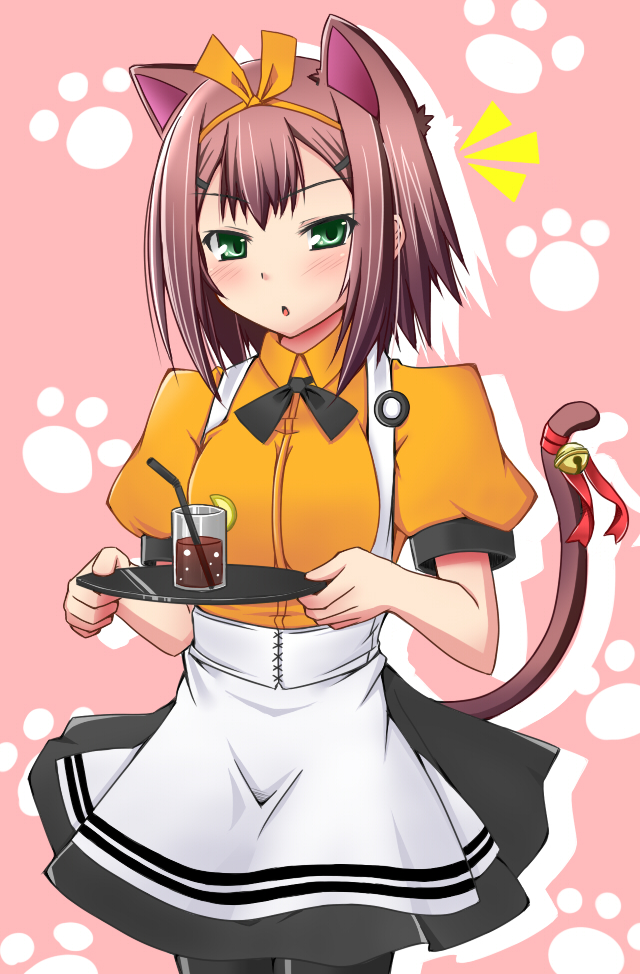 1boyanimal earsbellblushbowbowtiebreastsbreasts squeezed togetherbrown haircat boycat earscat tailcrossdressingcrossdressing (mtf)drinking strawflat chestglassgreen eyesjingle belllarge breastsmale focuspantyhosepaw printribbonsimple backgroundsolotailtail belltail ornamenttrapwaitress