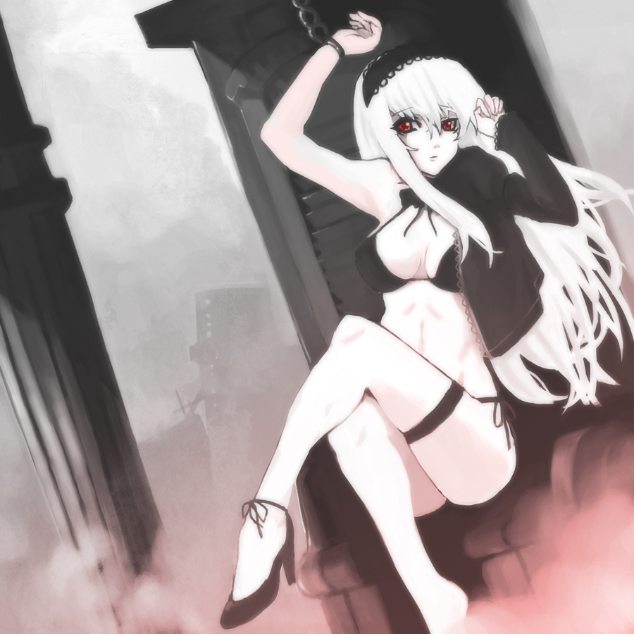 00s1girlalbinoalternate breast size (larger)brabreastscuffsfemale focushairbandhigh heelslarge breastslingeriepantiesred eyesshacklesshoesside-tie pantiessingle shoesolounderwearwhite hair