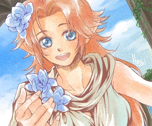 niwatori kokezou, nia teppelin, yoko littner, tengen toppa gurren lagann, 00s, 2girls, bed sheet, breasts, flower, hair flower, hair ornament, large breasts, long hair, multicolored hair, multiple girls, naked ribbon, nude, ponytail, red hair, ribbon, small breasts