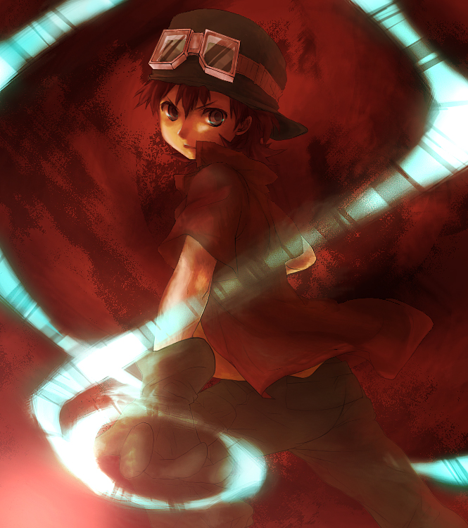 00s1boyblack eyesblack hairglovesgoggleshatmale focusred backgroundshort hairsolospirit evolution