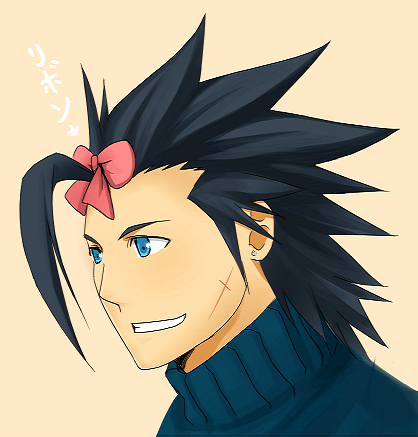 1990s (style)1boyahogeblack hairblue eyesbowearringsgameplay mechanicshair bowjewelrymale focusribbonscarsleevelesssleeveless turtlenecksmilesoloturtleneck
