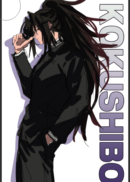 1boyalternate costumeblack jacketblack pantscharacter nameclosed mouthhand in pockethand upjacketlong hairlooking at viewermale focuspantsprofilered eyesshadowsolostandingvery long hairwhite background