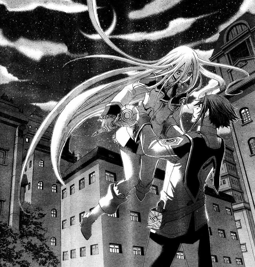 1boy1girlbattlebuildingcoatcomiceye contactgreyscalejumpinglong hairlong sleeveslooking at anothermansionmonochromeoutdoorsstandingthighhighsvery long hairzettai ryouiki