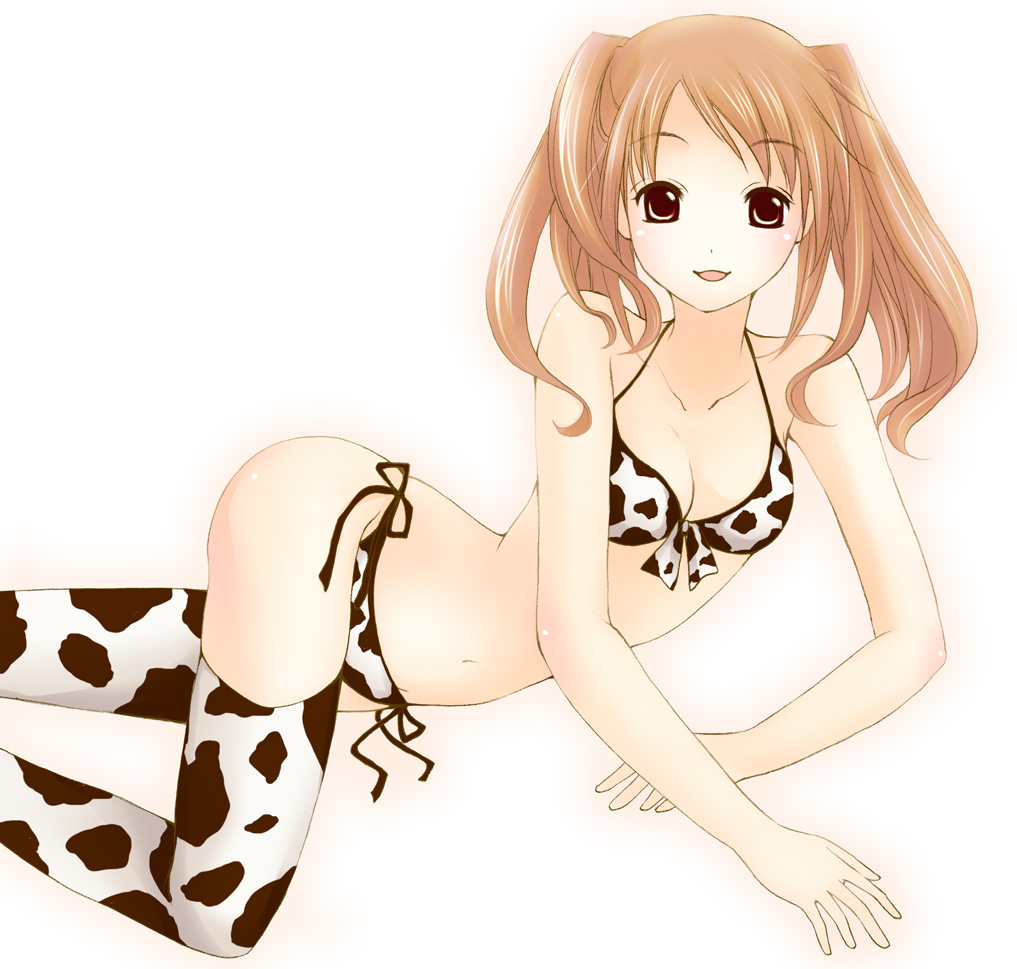 hisahiko, suzumiya haruhi, suzumiya haruhi no yuuutsu, fur, 00s, 1girl, animal ears, bra, breasts, brown hair, cat ears, cat tail, elbow gloves, female focus, gloves, hairband, kneeling, panties, short hair, solo, tail, thighhighs, underwear, underwear only, yellow eyes