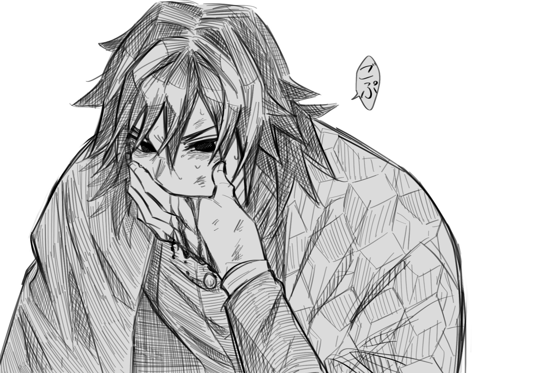 1boybloodblood from mouthbuttonscovering own mouthdemon slayer uniformempty eyesgreyscalehair between eyeshand uphaorihigh collarjacketjapanese clotheskikkoumonlow ponytailmale focusmonochromenunu92254ponytailprint haorisimple backgroundsolospeech bubblespiked hairupper bodywhite background