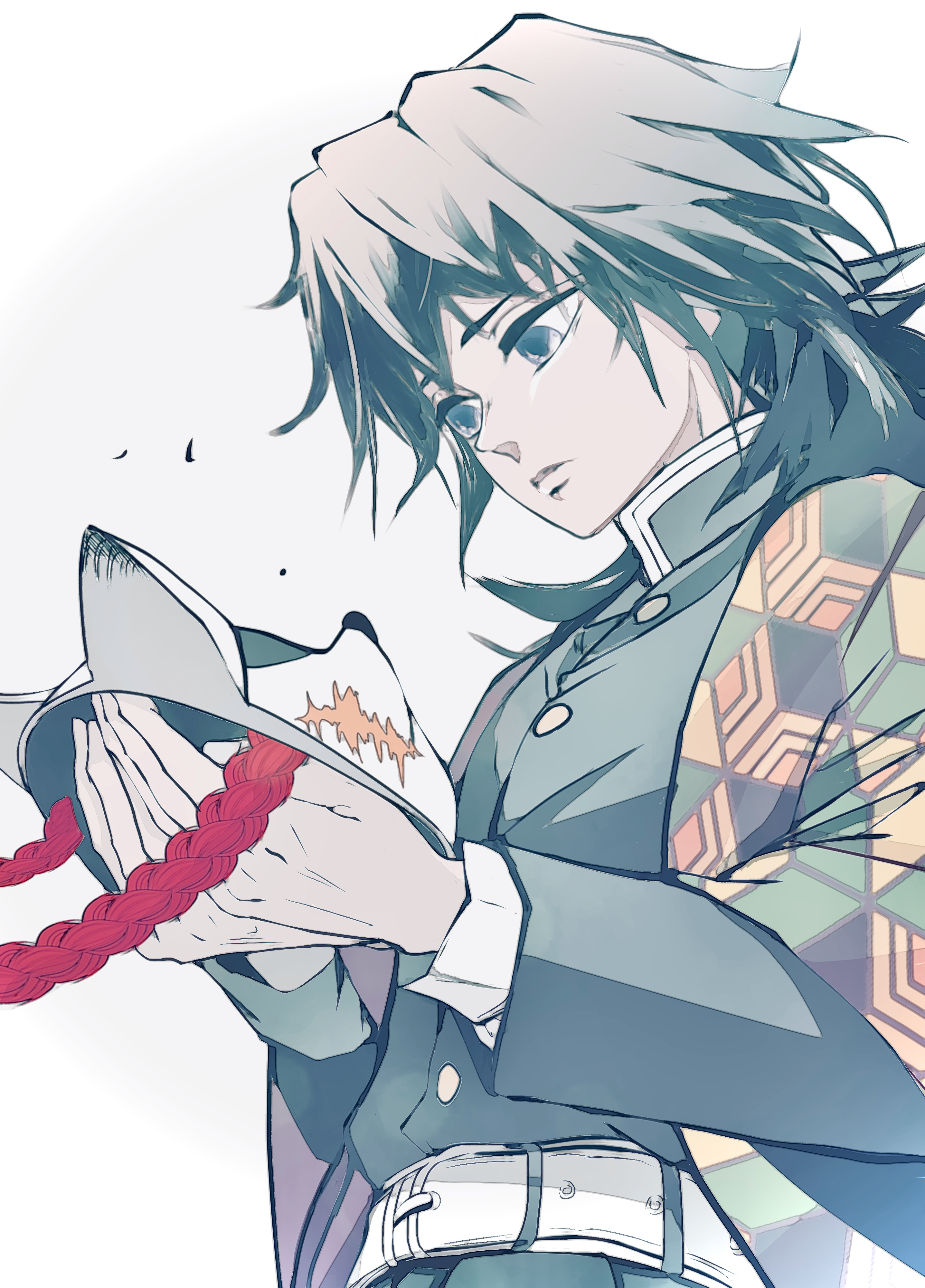 1boybeltblack hairblack jacketblack pantsblue eyesbuttonsdemon slayer uniformfox maskgold buttonshaorihigh collarholdingholding maskjacketjapanese clotheskikkoumonlow ponytailmale focusmaskpantsparted lipsponytailprint haorired haorisimple backgroundsolospiked hairwhite backgroundwhite belt