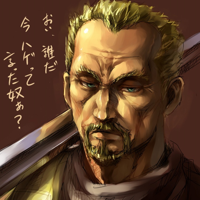 1boybeardblonde hairfacial hairgradient backgroundgreen eyesmale focusmanlysketchsoloswordweapon